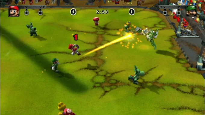 Each of the stadiums in Mario Strikers Charged has various characteristics and contraptions, which influence game play. Players must learn to use this to their advantage to truly dominate the pitch.