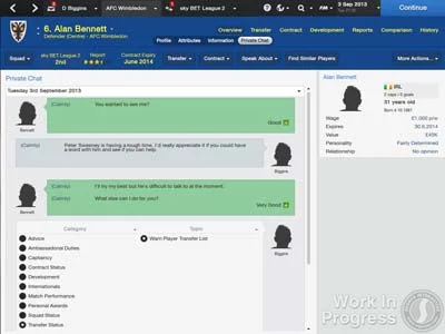 FM 2014 features a revamped transfer module where opposing clubs and managers adopt a more realistic approach when making or responding to transfer offers. In addition, a number of new ‘real world’ transfer clauses have been added, such as the facility to loan a player back to the club he’s just been bought from and the option to offer a combination of cash and loan players, as well as new contract clauses such as a sub bench appearance fee. On top of this, the old ‘turn-based’ system of transfer negotiations can now be done two ways, the tried and tested system and a new ‘live’ system, similar to that used in FM’s contract negotiations.