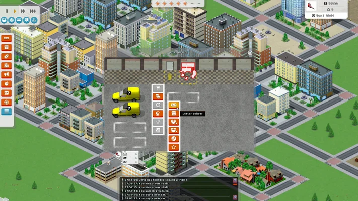 Dans Excalibur's Post Master, vous démarrez avec un seul bureau de poste, qui fournit des services d'enlèvement et de livraison pour une petite partie de la ville. Pour maintenir un excellent service, vous devrez embaucher des travailleurs pour trier le courrier, engager des agents de sécurité pour protéger vos bureaux contre les vols et acheter de nouveaux véhicules pour ramasser et distribuer le courrier.