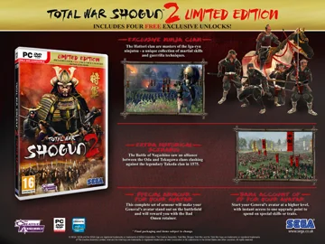 The Total War: Shogun 2 Limited Edition delivers instant access to exclusive and free content to both the single player and multiplayer modes of the game.
