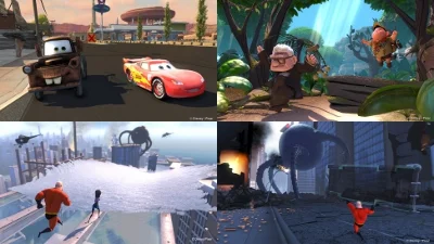 • Explore faithfully rendered Pixar worlds (immersive worlds)