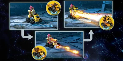 Laisse ta créativité te guider dans une aventure de construction et de jeu, voyage dans des mondes inattendus et fais équipe avec des alliés improbables dans une quête pour vaincre le maléfique Lord Vortech. Fais équipe avec Laval et tes personnages préférés dans ce multivers fou et mélangé ! Construis et place le Prince Lion héroïque sur le LEGO® Toy Pad pour lui donner vie dans le jeu, puis active ses capacités spéciales (CHI, Super force, Acrobate, Déflecteur de laser et Onde sonique) pour résoudre des énigmes et lutter contre les ennemis. Utilise son Mighty Lion Rider pour renforcer sa puissance et transforme-le en Lion Blazer et en Fire Lion pour obtenir des pouvoirs supérieurs dans le jeu !