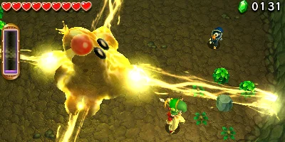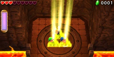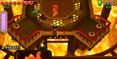 Une nouvelle aventure arrive dans le même style visuel que le jeu acclamé par la critique, The Legend of Zelda: A Link Between Worlds. Cette fois, trois joueurs doivent faire équipe (chacun représenté par Link) pour traverser des donjons et vaincre les boss en coopération. Utilisez la nouvelle mécanique du totem pour mettre trois Link l'un sur l'autre et pouvoir ainsi atteindre des endroits en hauteur et résoudre des casse-tête inventifs. Amassez un butin pour créer des tenues qui possèdent chacune leur propre style et habilité.