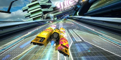 Éliminez vos concurrents grâce à de nombreuses armes et fendez l'air sur les musiques les plus mémorables de l'histoire des jeux de course. Que vous passiez à toute vitesse devant un ami sur l'écran divisé du mode deux joueurs, ou que vous fassiez mordre la poussière à tous les participants des courses en ligne à huit joueurs, vous allez vous amuser dans cette ambiance futuriste ultra-rapide.
