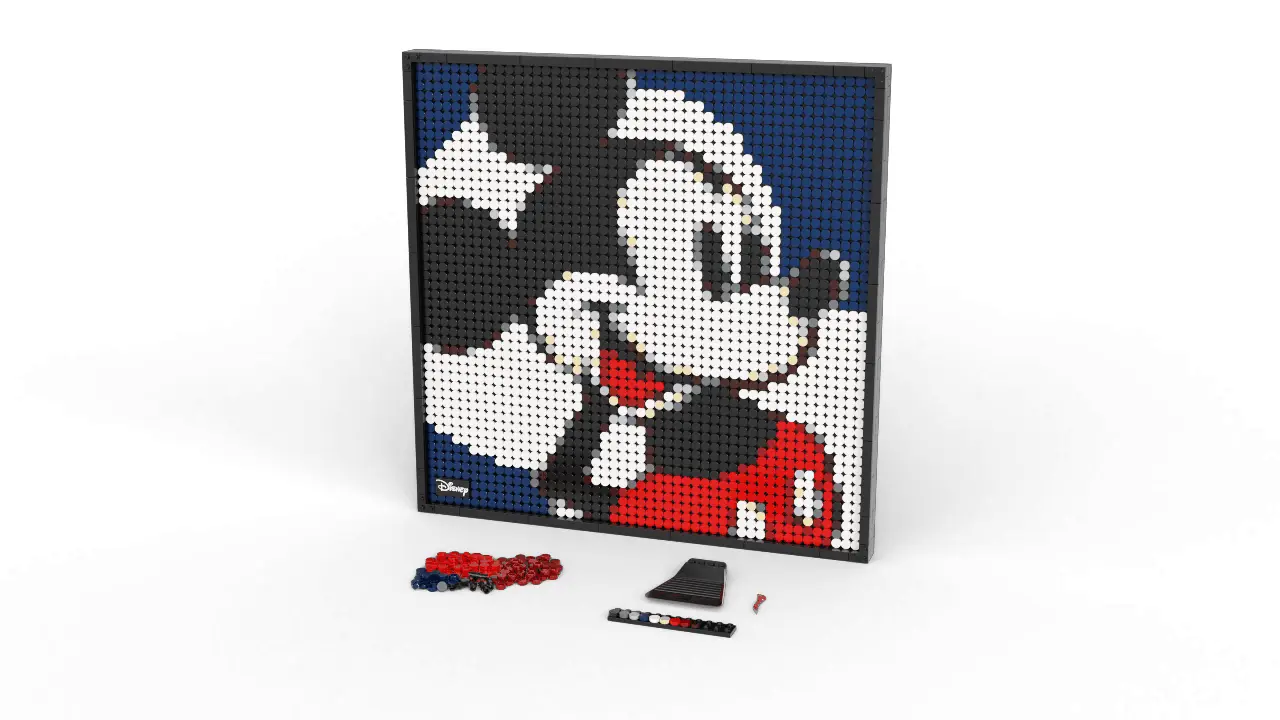 - Montre ton amour pour Mickey Mouse ou Minnie Mouse de Disney avec ce superbe ensemble LEGO® Art ǀ Disney's Mickey Mouse (31202) en mosaïque. Vous pouvez exposer la pièce sur votre mur ou votre étagère après l'avoir créée.