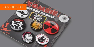 Brand yourself as part of the army of the living with these kickass Zombie button badges. 5 zombie badges to accessorize your gear.